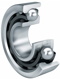 Los rodamientos a bolas de contacto angular, de una hilera, son unidades autoretenidas con anillos exteriores e interiores macizos y coronas de bolas con jaulas de poliamida, de chapa de acero o de latón. Las pistas de rodadura de los anillos interiores y exteriores están ajustadas entre sí en dirección del eje de simetría del rodamiento. Los rodamientos están disponibles abiertos y obturados. Su regulación de alineación es muy reducida.